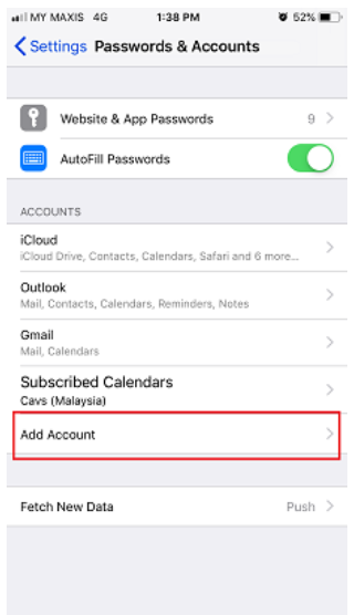 11. In order to set up additional settings for mail accounts, you need to return in previous menu Passwords & Accounts and click on your newly created accounts.
